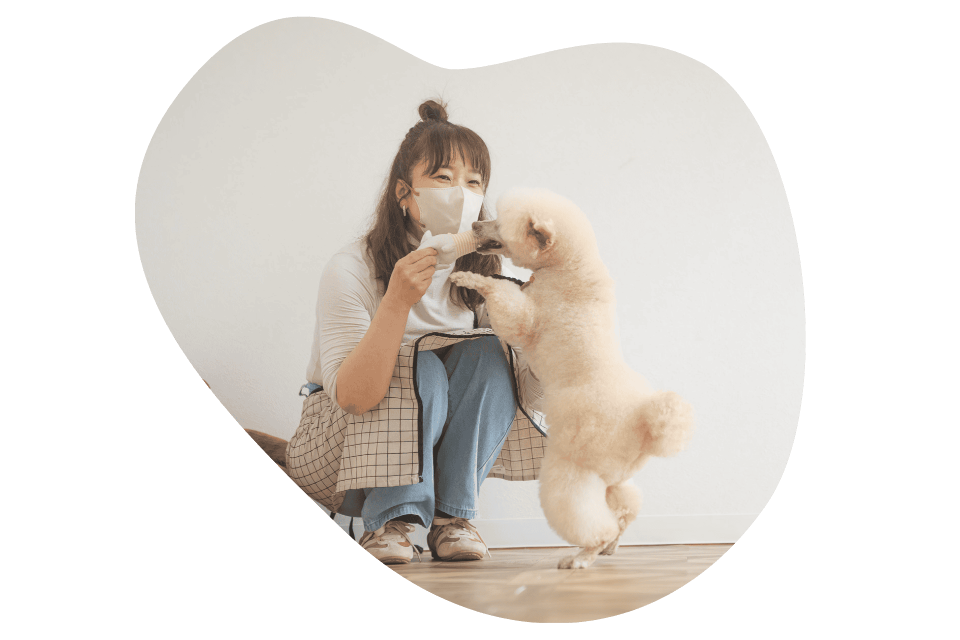 大切な愛犬たちへの想いを胸に、お客様のわんちゃんにも自分の家族のようにやさしく向き合いたい。